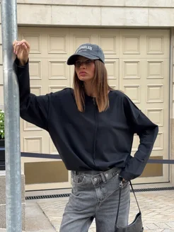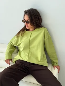 Лонгслив белый оверсайз хлопок базовый трикотажный