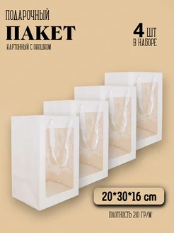 Подарочный пакет с окошком для цветов и игрушек 4 штуки