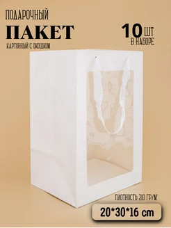 Подарочный пакет с окошком для цветов и подарков 10 штук