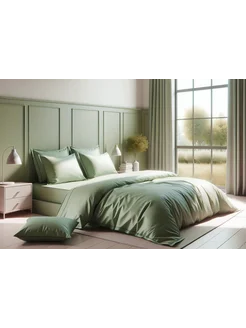 Постель тенсель Евро резинка 160х200х30 - М - 74 Оливковый