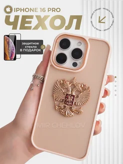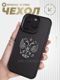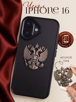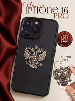 Чехол на iPhone 16 Pro Герб России РФ металлический