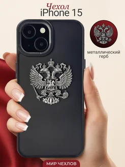 Чехол на iPhone 15 Герб России РФ металлический