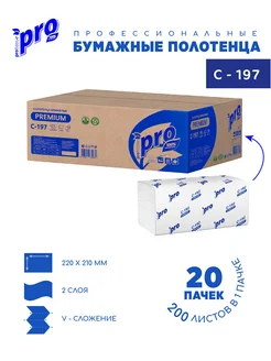 Бумажные полотенца листовые V-сложение 2 слоя 20 шт по 200 л