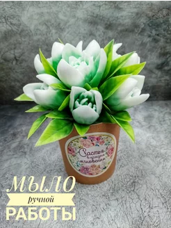 Мыло ручной работы "Круглая коробка зайка в цветах"