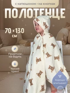 Полотенце муслиновое для новорожденных с капюшоном
