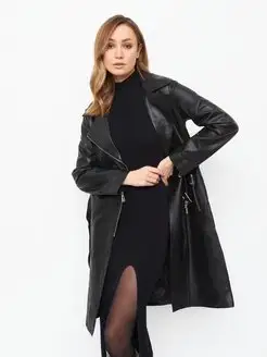 Пуховик - пальто из натуральной кожи с капюшоном и поясом