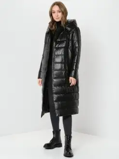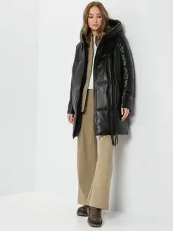 Пуховик - пальто из натуральной кожи удлиненный с капюшоном