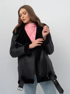 Дубленка зимняя удлиненная из натуральной овчины оверсайз