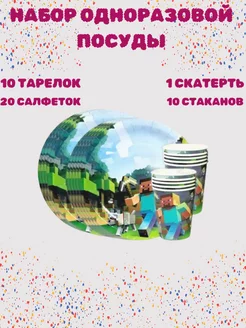 Набор одноразовой посуды для праздника майнкрафт