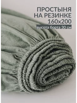 простыня на резинке 160х200 вареный хлопок борт 30 см