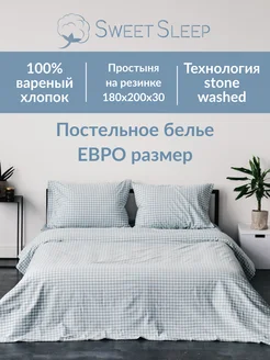 Постельное белье 2 спальное вареный хлопок с европростыней