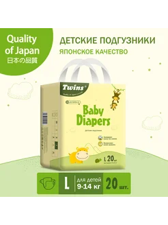 Подгузники Twins, размер L (9-14 кг), 20 шт