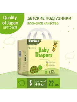 Подгузники Twins, размер S (4-9кг), 22 шт