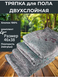 Тряпка для пола хлопковая двухслойная, 46x38 см ХПП 4 шт