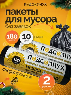 Мешки для мусора 180л прочные плотные, 2 рулона