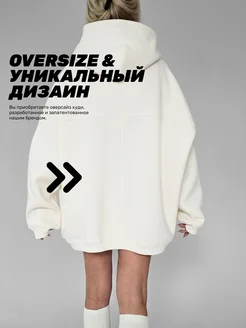Худи оверсайз с капюшоном и начесом удлиненное