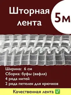 Лента для штор 5 м, ширина 6 см органза