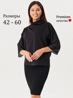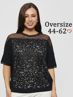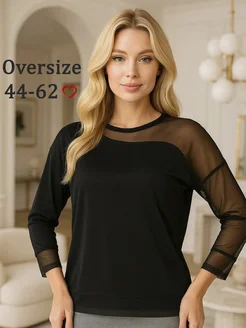 Кофта женская нарядная черная с сеткой большой размер легкая