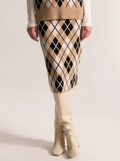 Юбка карандаш вязаная в клетку классическая