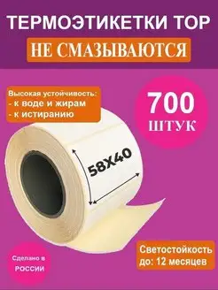 Термоэтикетки ТОП 58х40 намотка 700 шт, 1 рулон, Этикетки са…