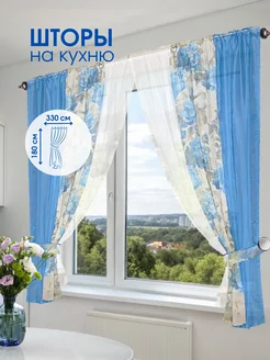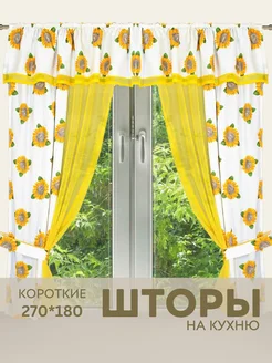 Шторы на кухню короткие с ламбрекеном 270х180 см 1 шт