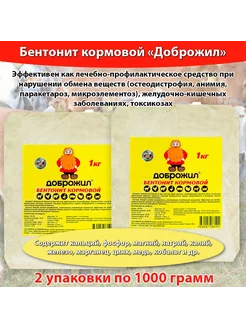 Бентонит кормовой, витамины для скота 1 кг * 2 упаковки