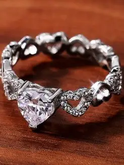 Кольцо сердечки с камнями