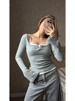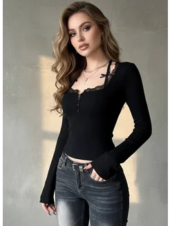 лонгслив топ кофта y2k с кружевом длинными рукавами