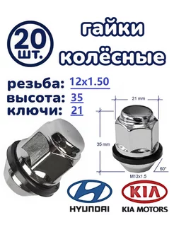 гайки колесные М12x1.50 Хондай Киа, пластиковая шайба