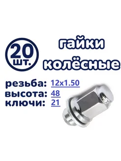 гайки колесные М12x1.50x48 ключ 21 цилиндр с шайбой