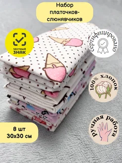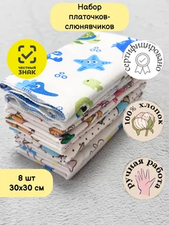 Салфетка-слюнявчик для детей 30х30см набор 8 шт