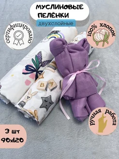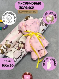 Пеленки для новорожденных, муслин, набор 3 шт. 100х130 см