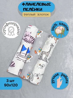 Пеленки для новорожденных фланелевые набор 3шт, 90х120 см