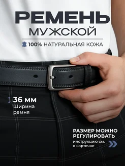 Ремень мужской натуральная кожа кожаный пояс черный брючный