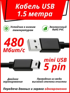 Кабель для зарядки 1.5м AM MiniUSB шнур для регистратора