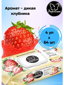 Влажные салфетки,4 упаковки по 64 штуки,клубника
