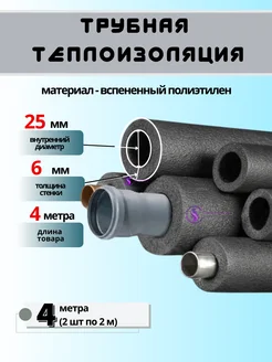 Утеплитель для труб водоснабжения 25 6- 4 метра
