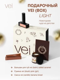 Новогодний набор косметики блеск для губ, румяна и свеча
