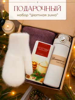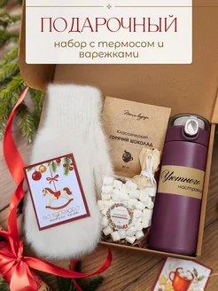 Новогодний подарочный набор 2026 Шарф, варежки, термос