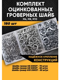 Комплект шайб гроверных М6, М8, М10, 180 шт
