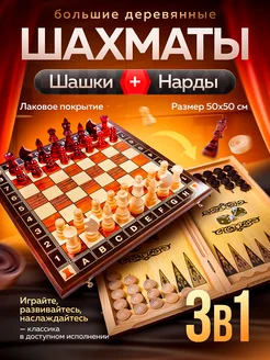 Шахматы 3 в 1 большие деревянные дебют лак, 50 на 50 см