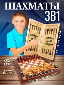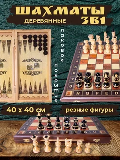 Шахматы 3 в 1 деревянные лаковые Дебют 40 на 40 см