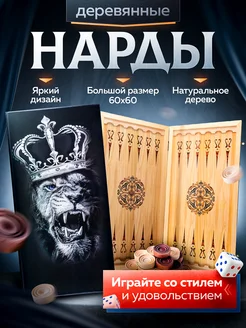 Нарды большие деревянные с рисунком лев, 60 на 60 см