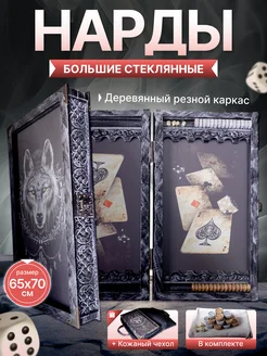 Нарды стеклянные большие в виде книги Волк VIP, 65х70 см