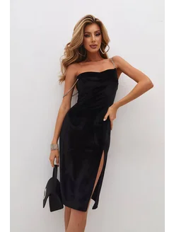 Вечернее бархатное платье с разрезом