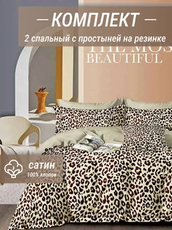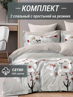 Постельное белье сатин 2 спальное на резинке, 50х70