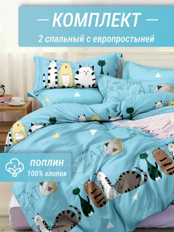Постельное белье 2 спальное евро поплин 70х70