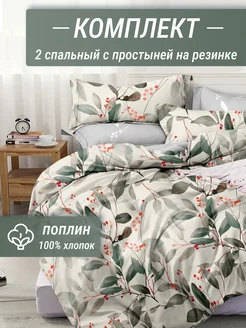 Постельное белье 2 спальное на резинке поплин 50х70