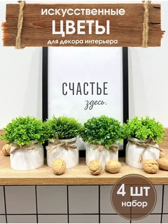 Искусственные цветы в горшках для декора интерьера, 4 шт