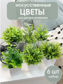 Искусственные цветы в горшках для декора интерьера, 6 шт